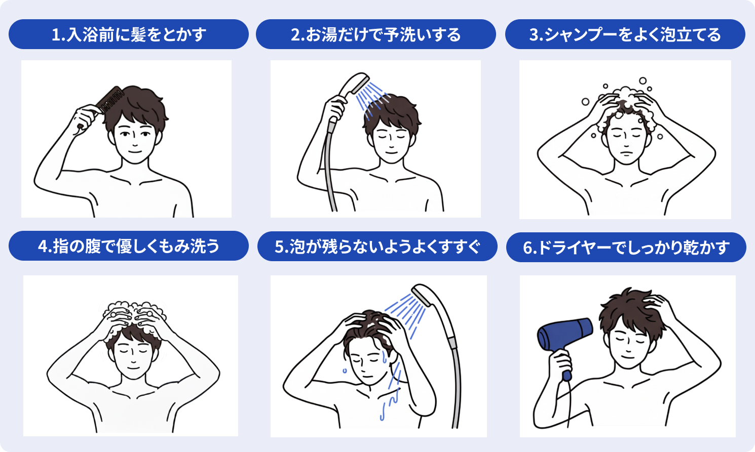 正しいシャンプーのやり方については「シャンプーが禿げる原因に?AGA・薄毛対策になる正しいシャンプー方法」の記事でも解説しているので、あわせてチェックしてみてください。