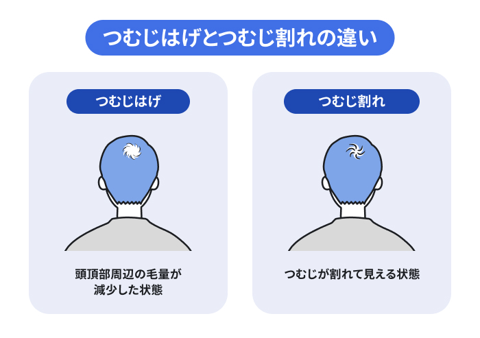 つむじはげとつむじ割れは、見た目が似ていますが、実際の毛量に違いがあります。