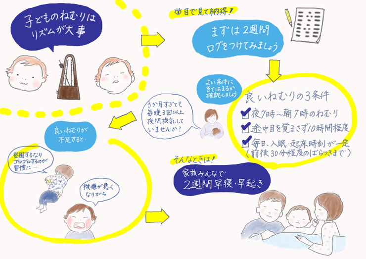 日本眠育推進協議会は、睡眠を中心とする適切な生活リズムが「健康でバランスの取れた心身の発達の基盤」と捉え、乳幼児期からの正しい生活習慣を育む「眠育(みんいく)」の普及に尽力しています。