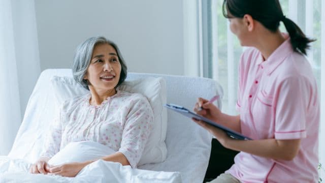 医療施設用電動ベッド「アスピーノ」は、徹底した安全設計により、利用者の自立した動作とスタッフの業務効率化を同時に実現する医療施設用電動ベッドです。背もたれを頭部と腰部に分けて細かく角度調整できる機能により、食事の際に飲み込みやすい自然な姿勢を保ち、誤って気管に入るリスクを減らす手助けをします。